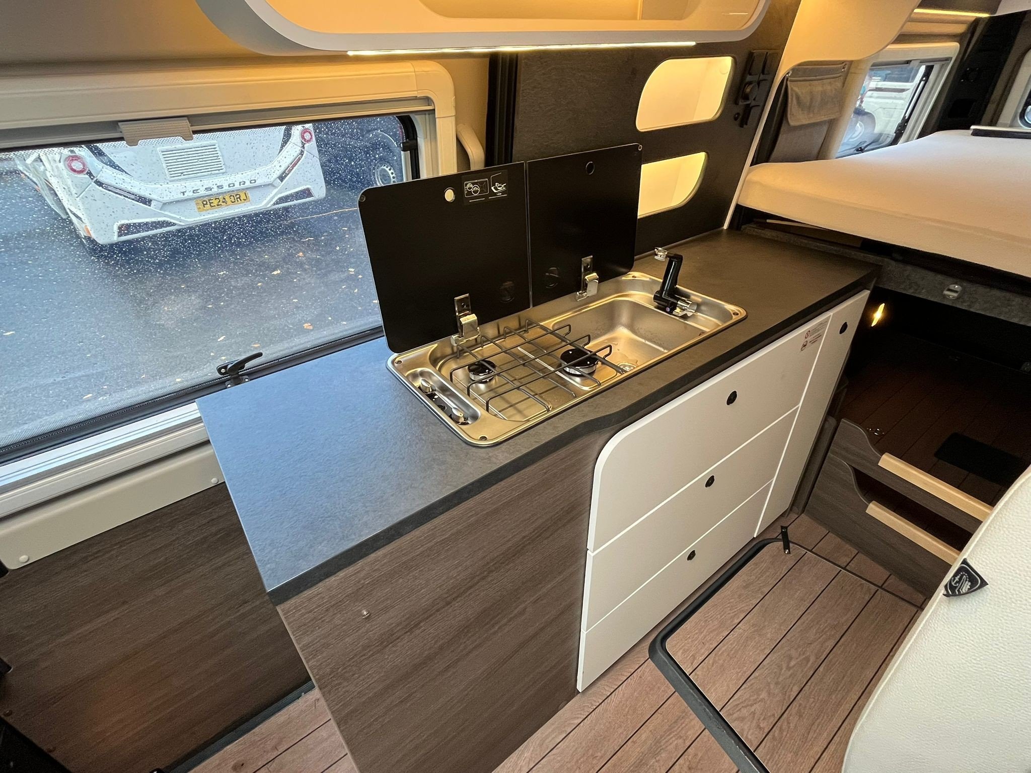 Up front, the newly updated 4-zone kitchen layout gives you a more ergonomic and spacious cooking area, making mealtimes effortless wherever you stop. Efficient diesel central heating ensures year-round comfort, keeping the interior warm and inviting even in colder climates. As a Demo model, this 630 L showcases VanTourer’s latest innovations at their best—delivering premium touring capability, exceptional living comfort, and the freedom to roam wherever the road leads.