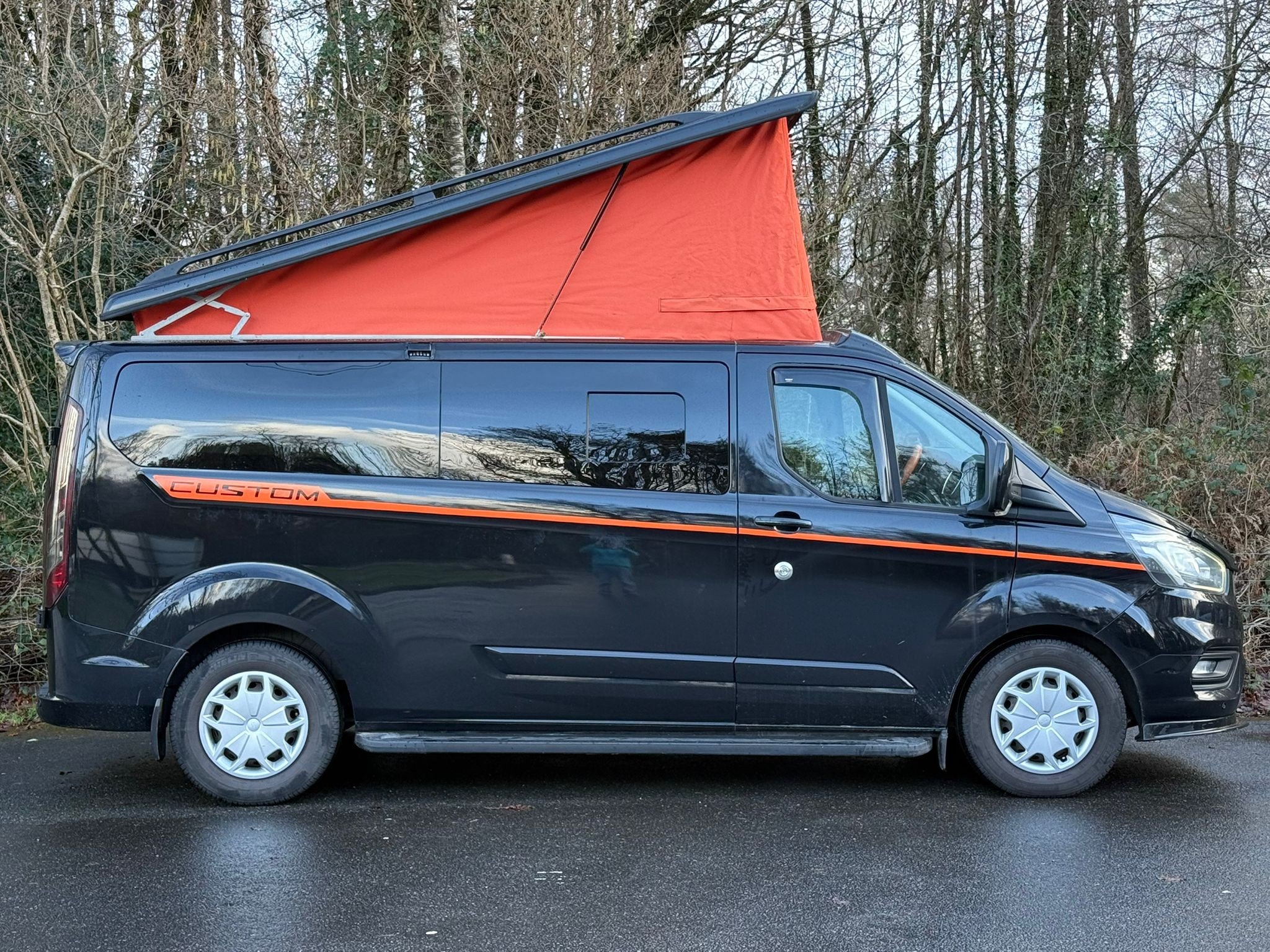 This Ford Transit Custom Black edition has been professionally converted into a stylish and practical camper van, perfect for weekends away or longer adventures. Finished in a sleek black exterior, it combines stealthy good looks with a thoughtfully designed living space inside. The conversion makes smart use of space, offering comfort, convenience, and flexibility on the road, whether you’re heading off-grid or staying on a campsite. Reliable, easy to drive, and ready to go, this camper is ideal for anyone wanting freedom, comfort, and adventure in one sharp-looking package.