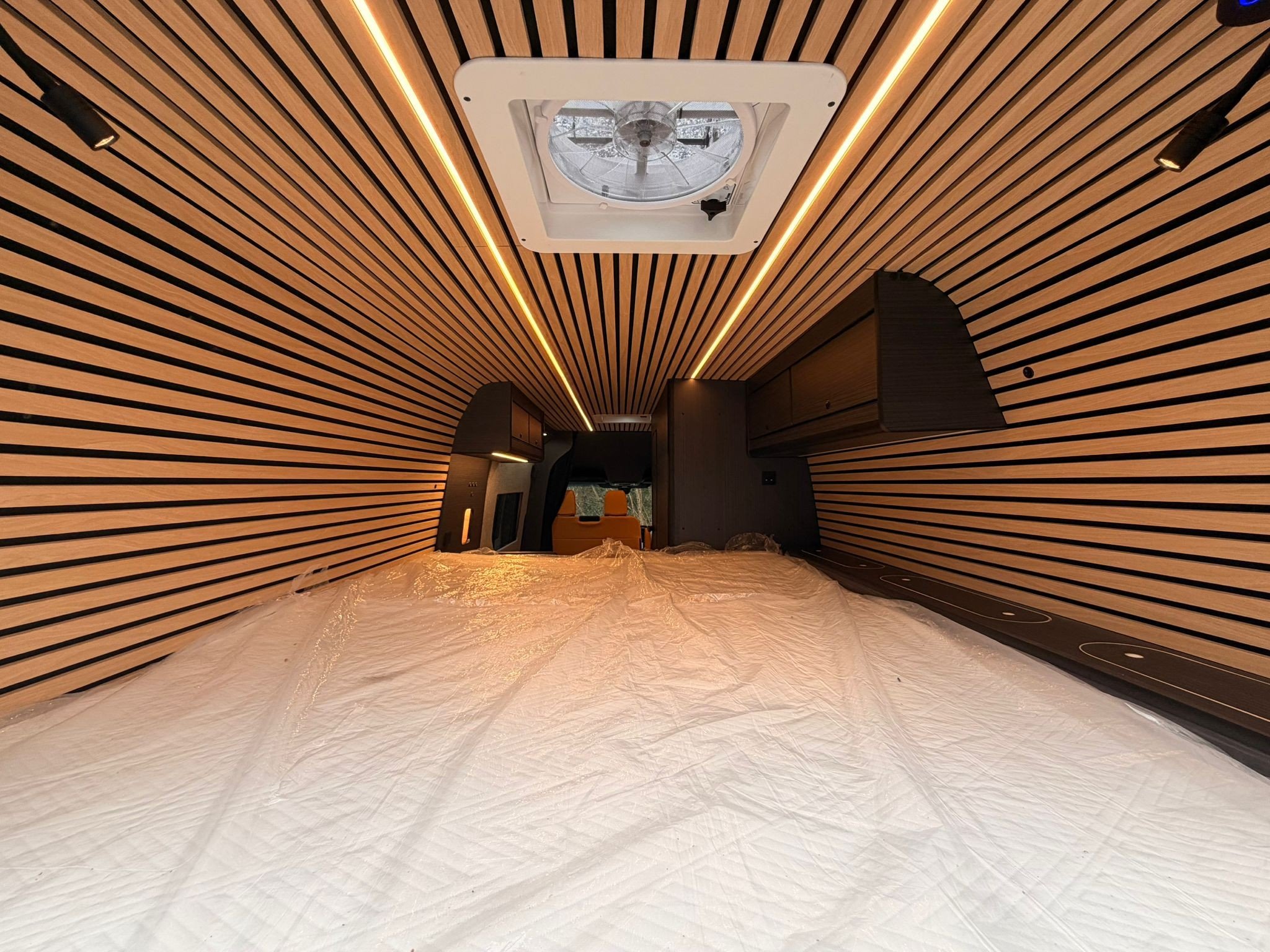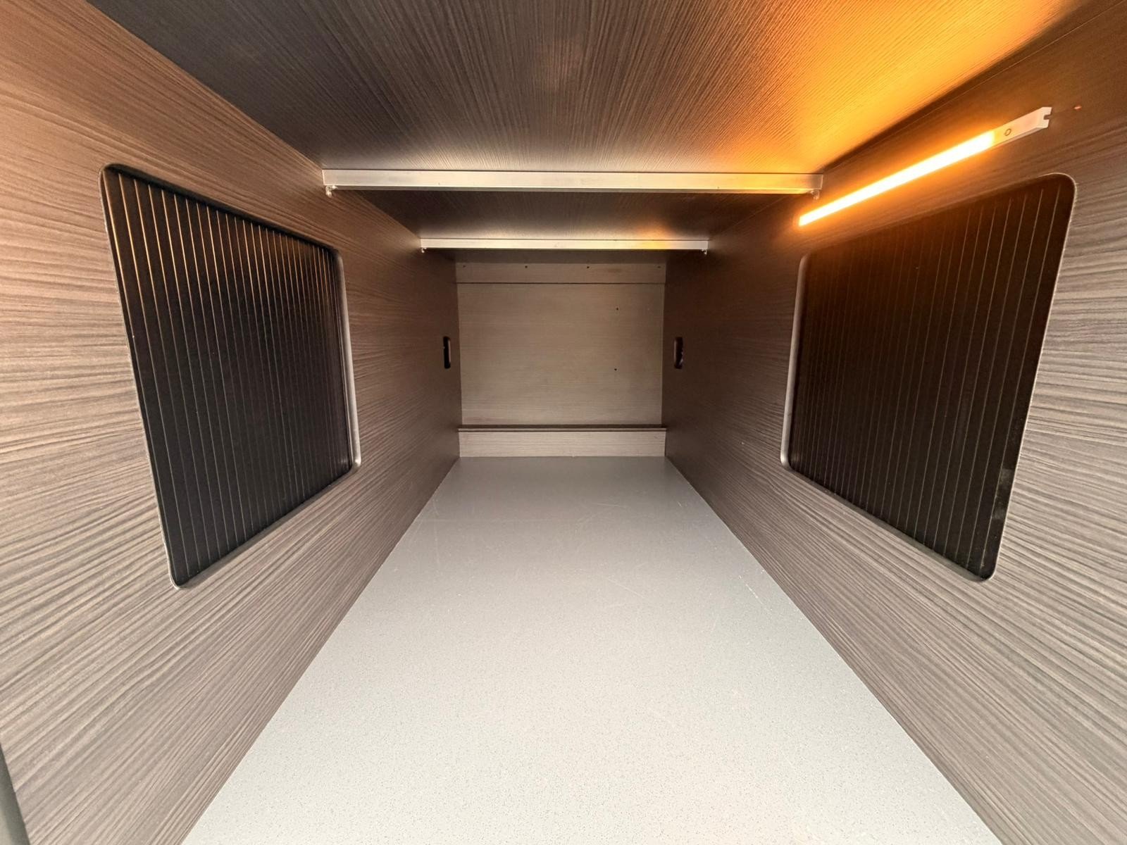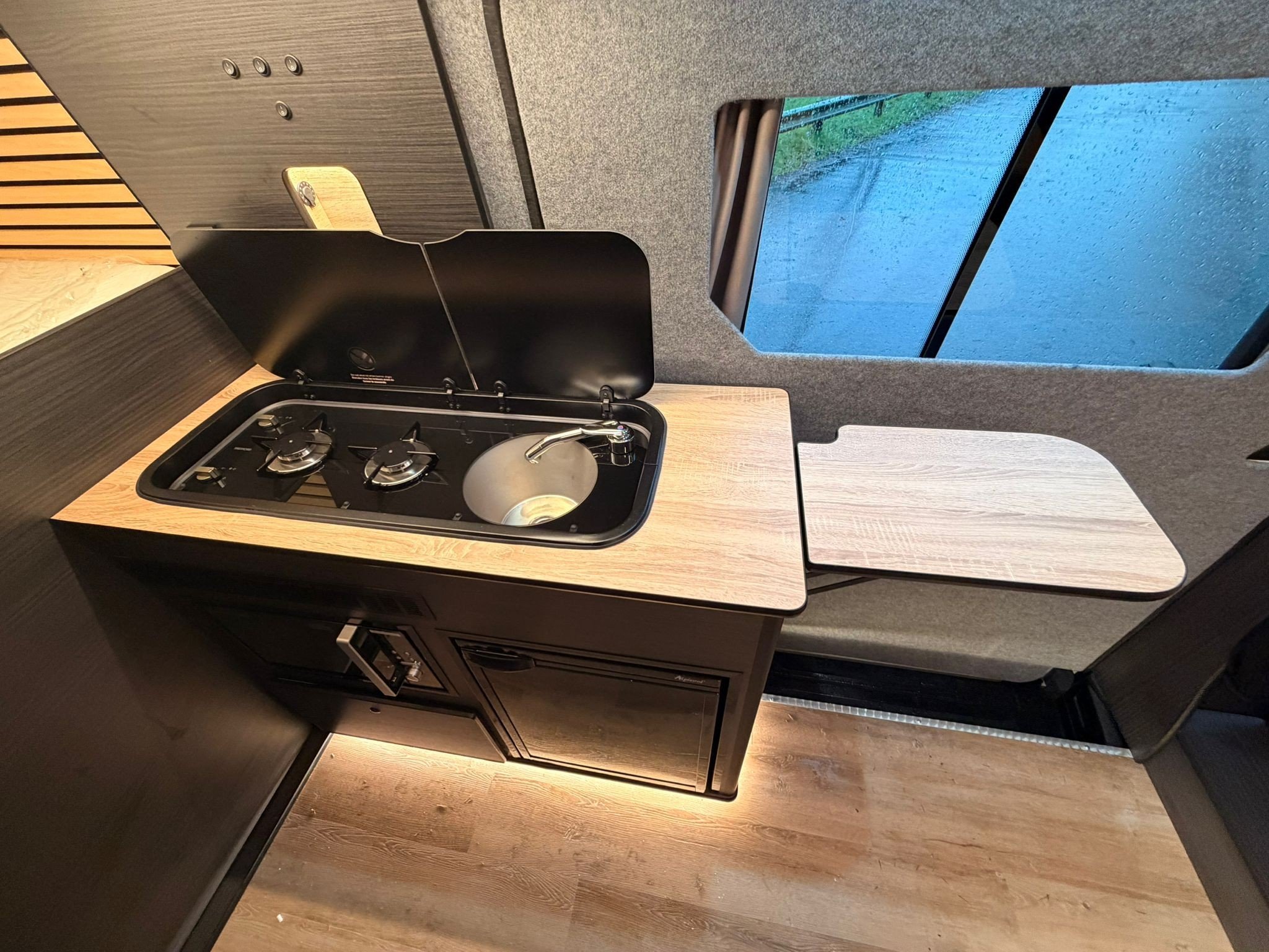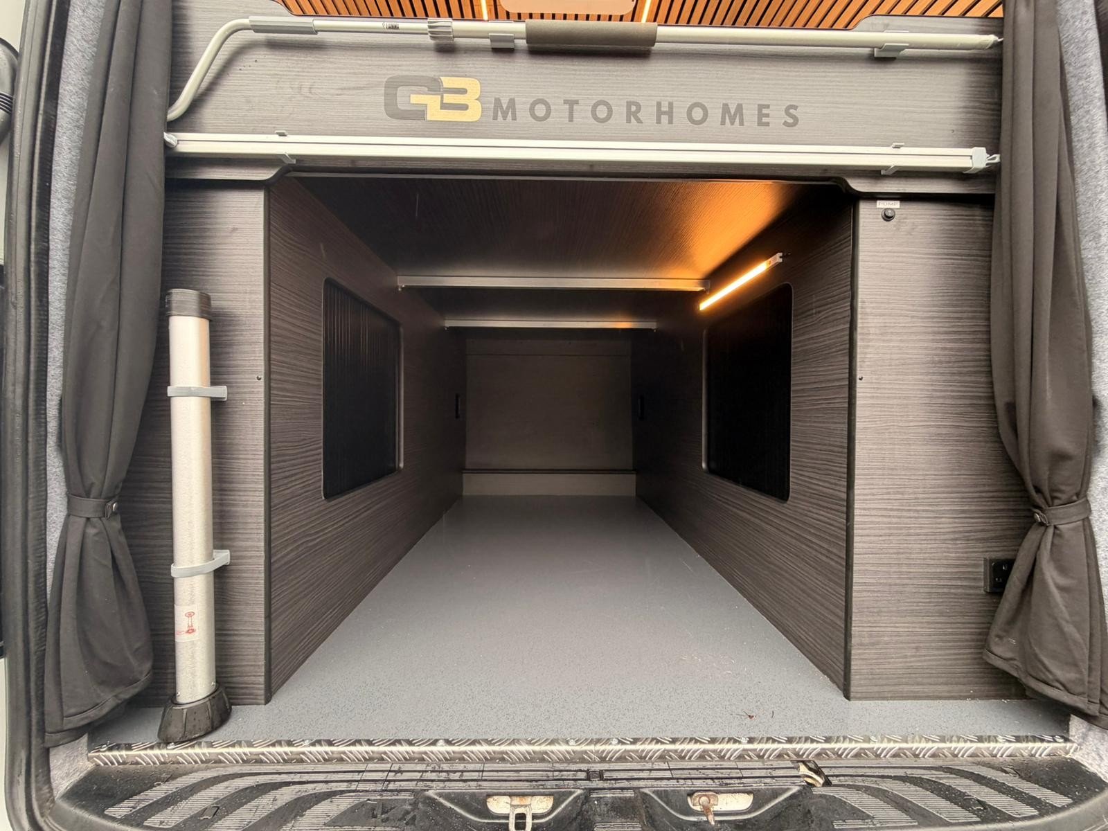 The conversion has been designed with motorsport in mind, featuring a massive garage ready for kit, spares and bulky gear, plus purpose-built fittings to keep everything secure and organised on the move. It’s fully set up for life off-grid too, with serious battery reserve, masses of solar power, and a 2000W inverter so you can run the essentials without relying on hookups. There’s even a separate water tank dedicated to a pressure washer, making it ideal for keeping bikes, cars, tools and boots clean after a dirty weekend. A proper race-van setup with the looks, the capability, and the quality to match.