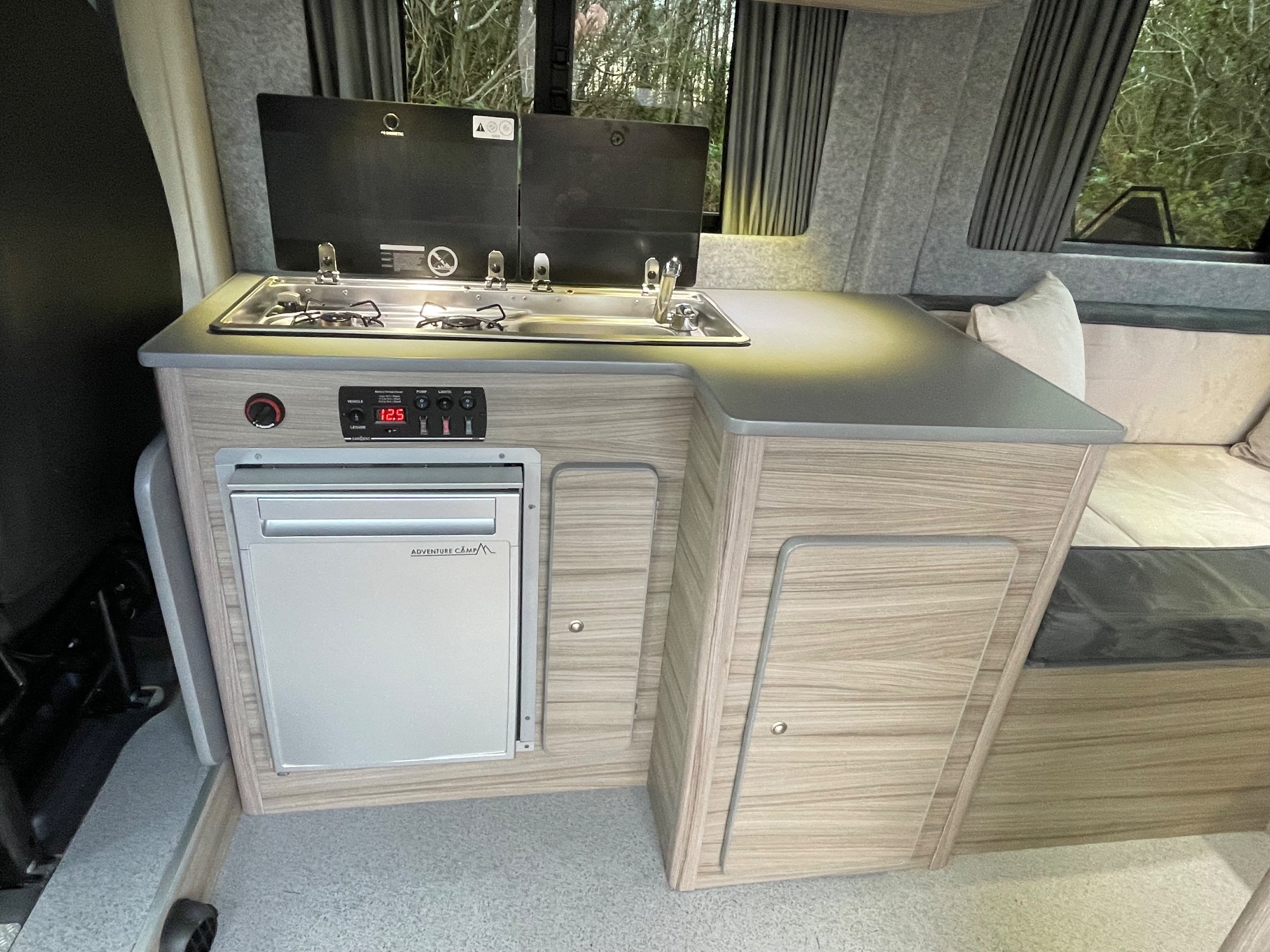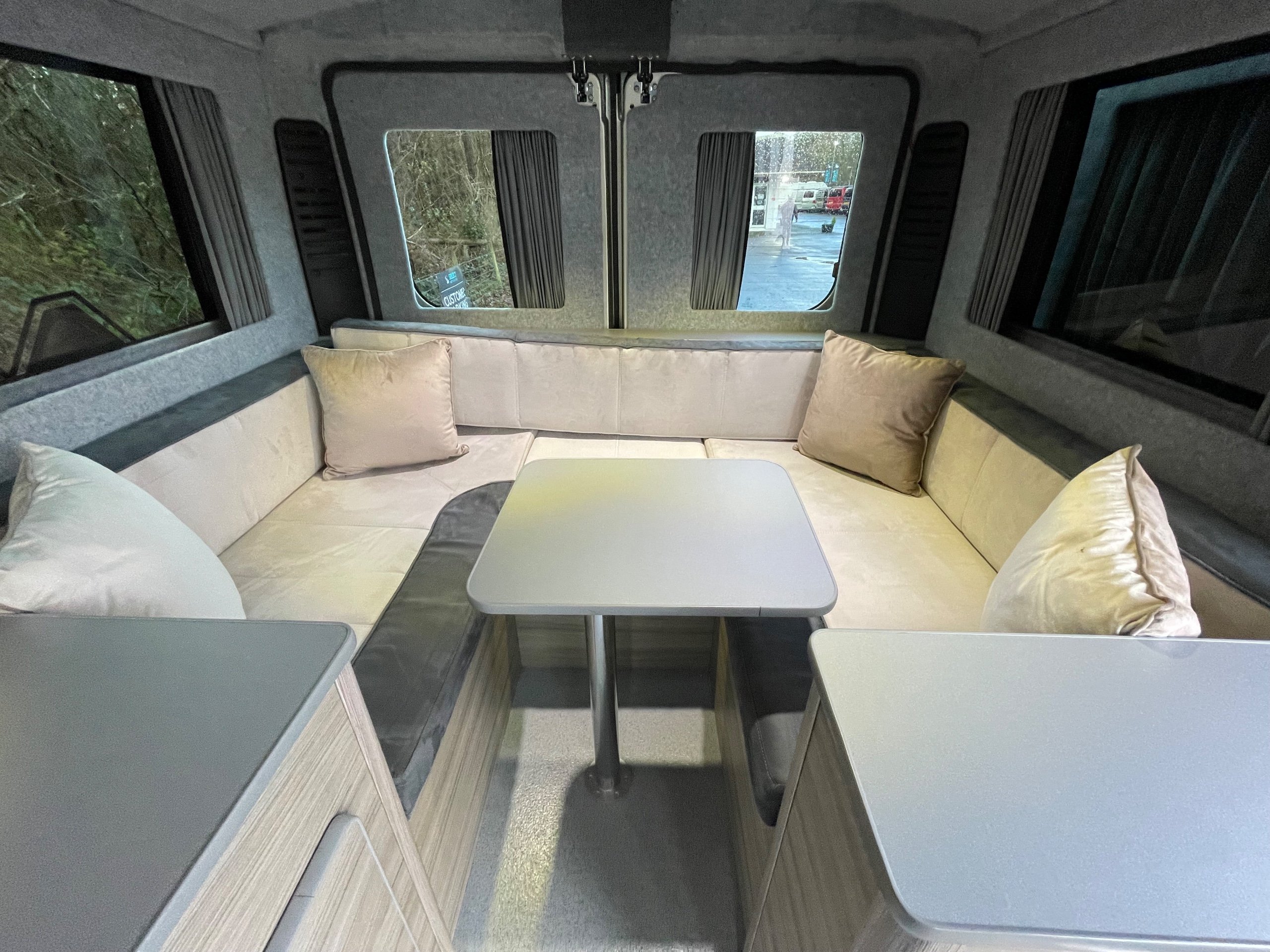 This compact Peugeot Boxer camper, professionally converted by Leisure Camp UK, is a superb example of clever design in an easy-to-manage package. Measuring under 5 metres in length, it’s ideal for everyday driving while still offering all the comforts you need for weekends away or longer adventures. With 47,442 miles on the clock, it features a bright and welcoming interior thanks to the large windows, which flood the space with natural light while remaining tinted for privacy. The cab benefits from swivel front seats, seamlessly extending the living area when parked up.