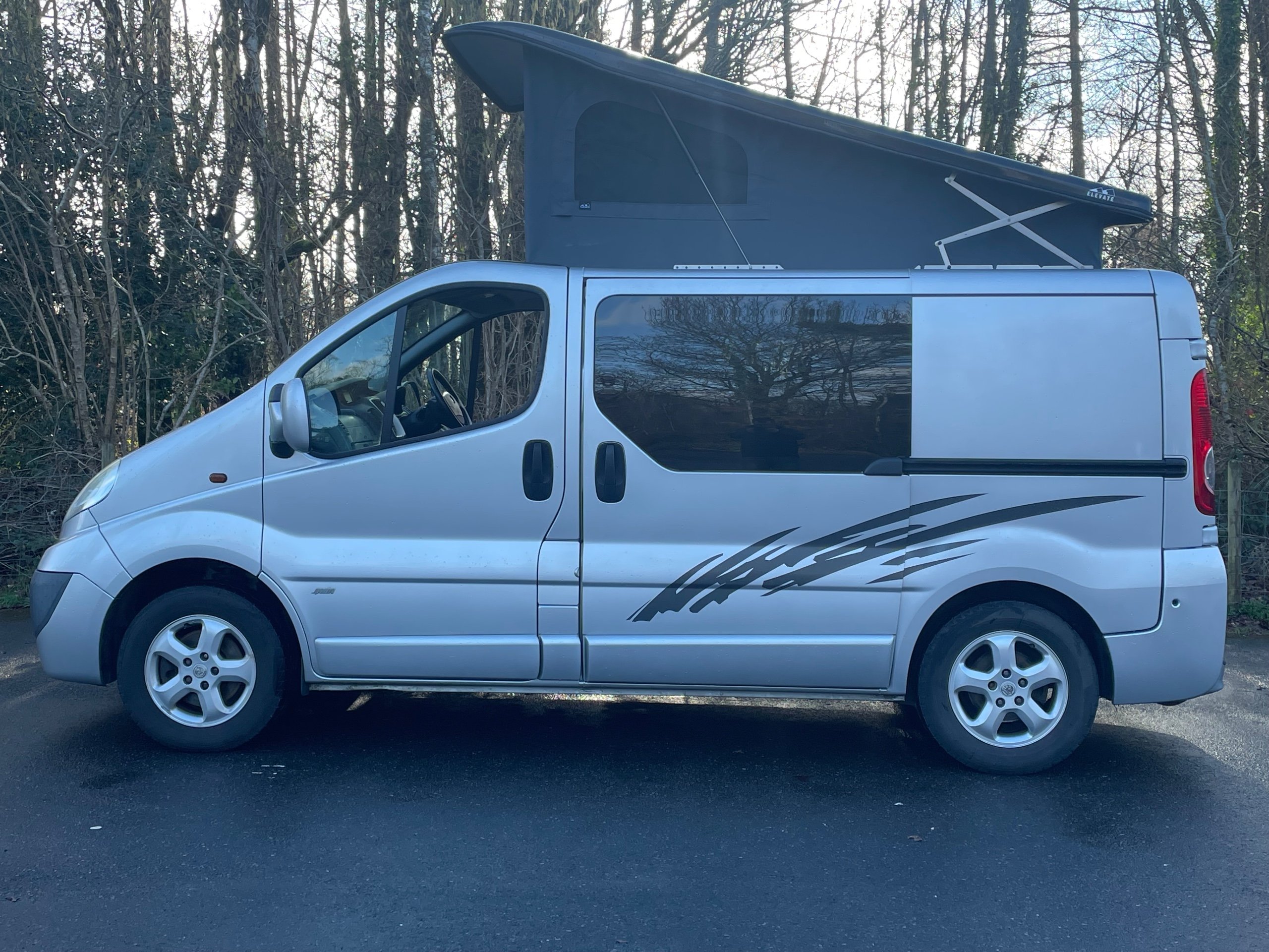Inside, you’ll find sleeping space for the whole crew thanks to a pop-top double bed plus a transverse make-up double bed in the rear, making it perfect for couples or small families. A 100w solar panel on the roof keeps your leisure power topped up, giving you the freedom to wild camp and stay off-grid longer. Clean, well-looked-after, and thoughtfully converted, this Vivaro is ready to load up, point the nose toward adventure, and get going.