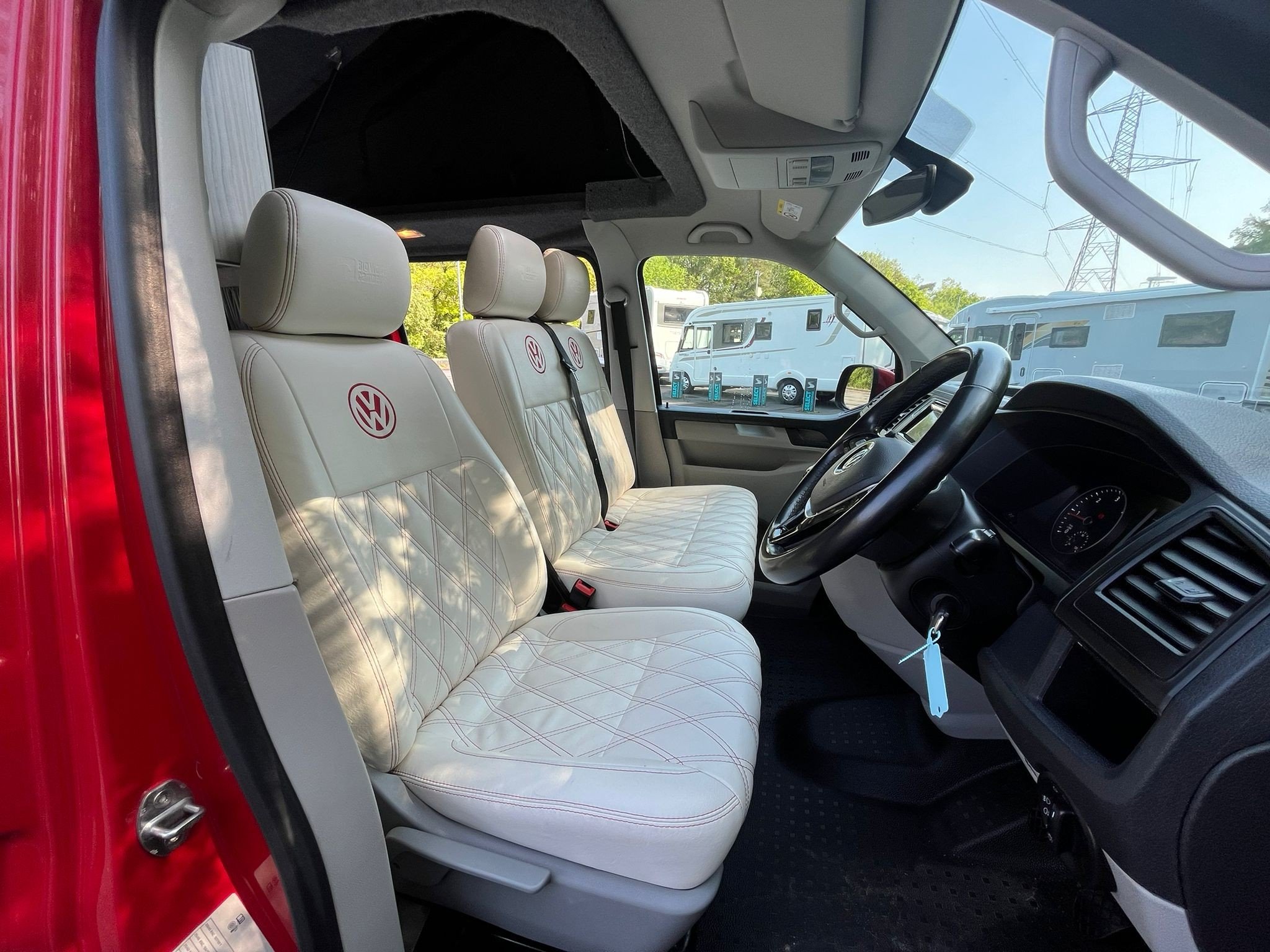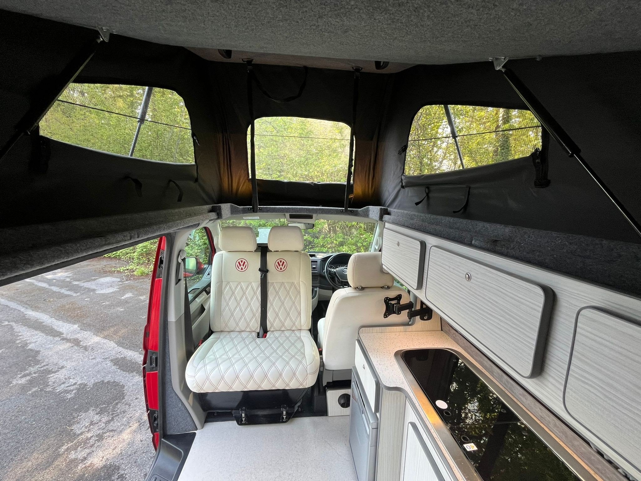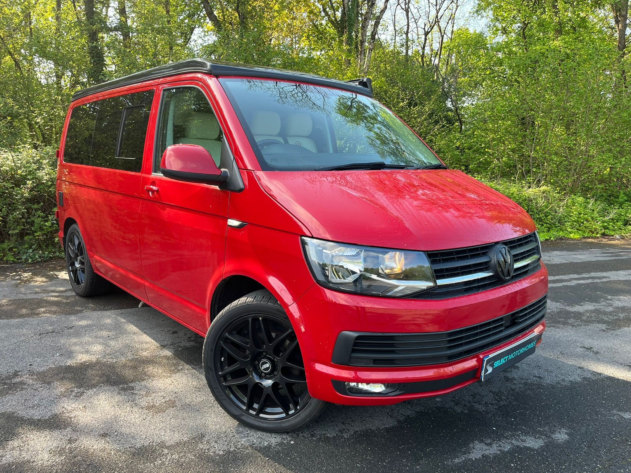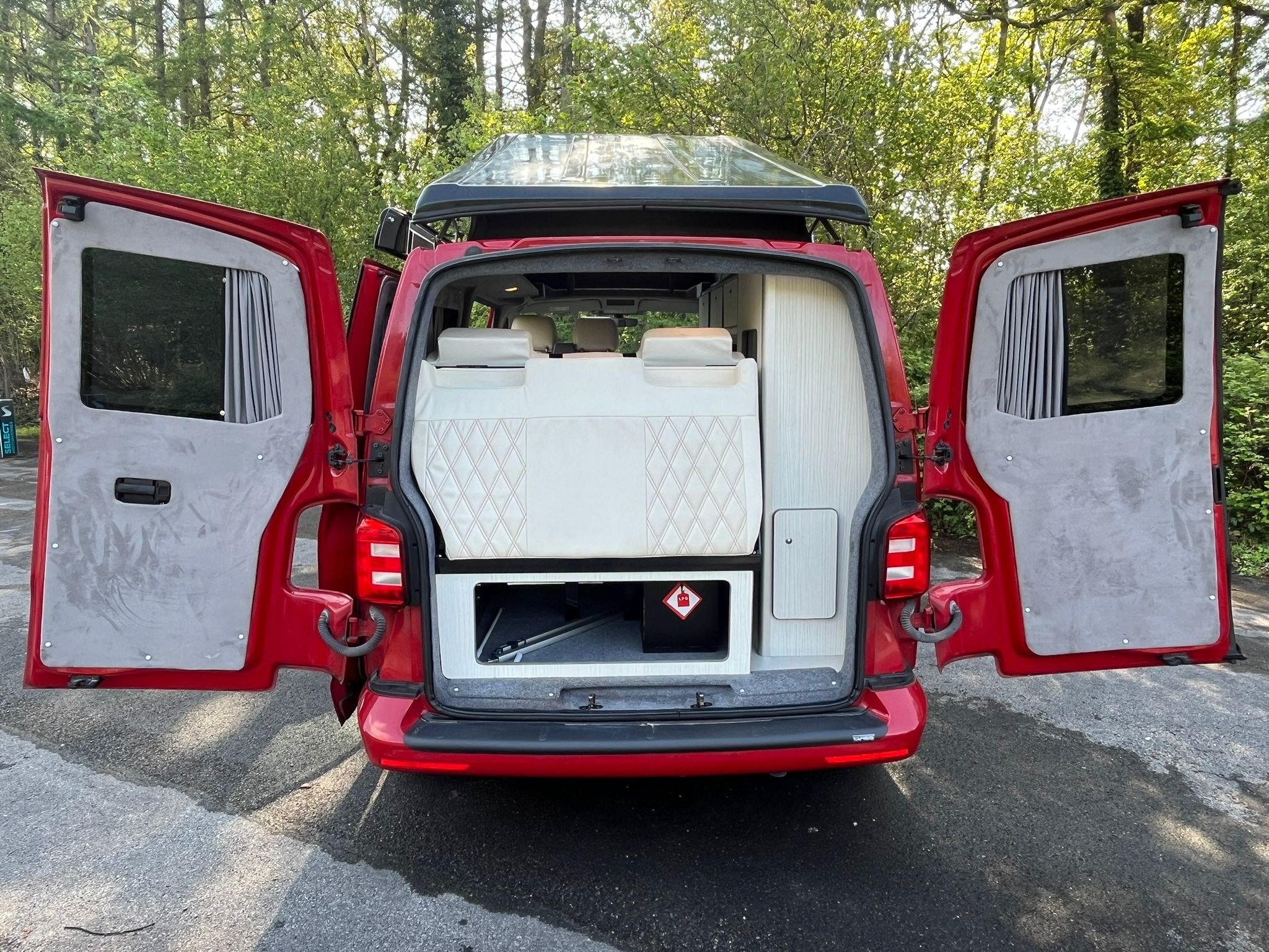 Unleash your inner explorer with this head-turning 2019 VW Transporter, finished in a bold, glossy red that commands attention wherever it goes. Sitting low on sleek black alloys, enhanced by aggressive side bars and a matching black awning, this van is more than just a camper—it’s a statement. The pop-top roof gives you extra headroom and sleeping space, transforming road trips into luxury escapes. Whether you’re chasing sunsets or carving through country roads, this Transporter brings performance, style, and freedom in one unforgettable package.