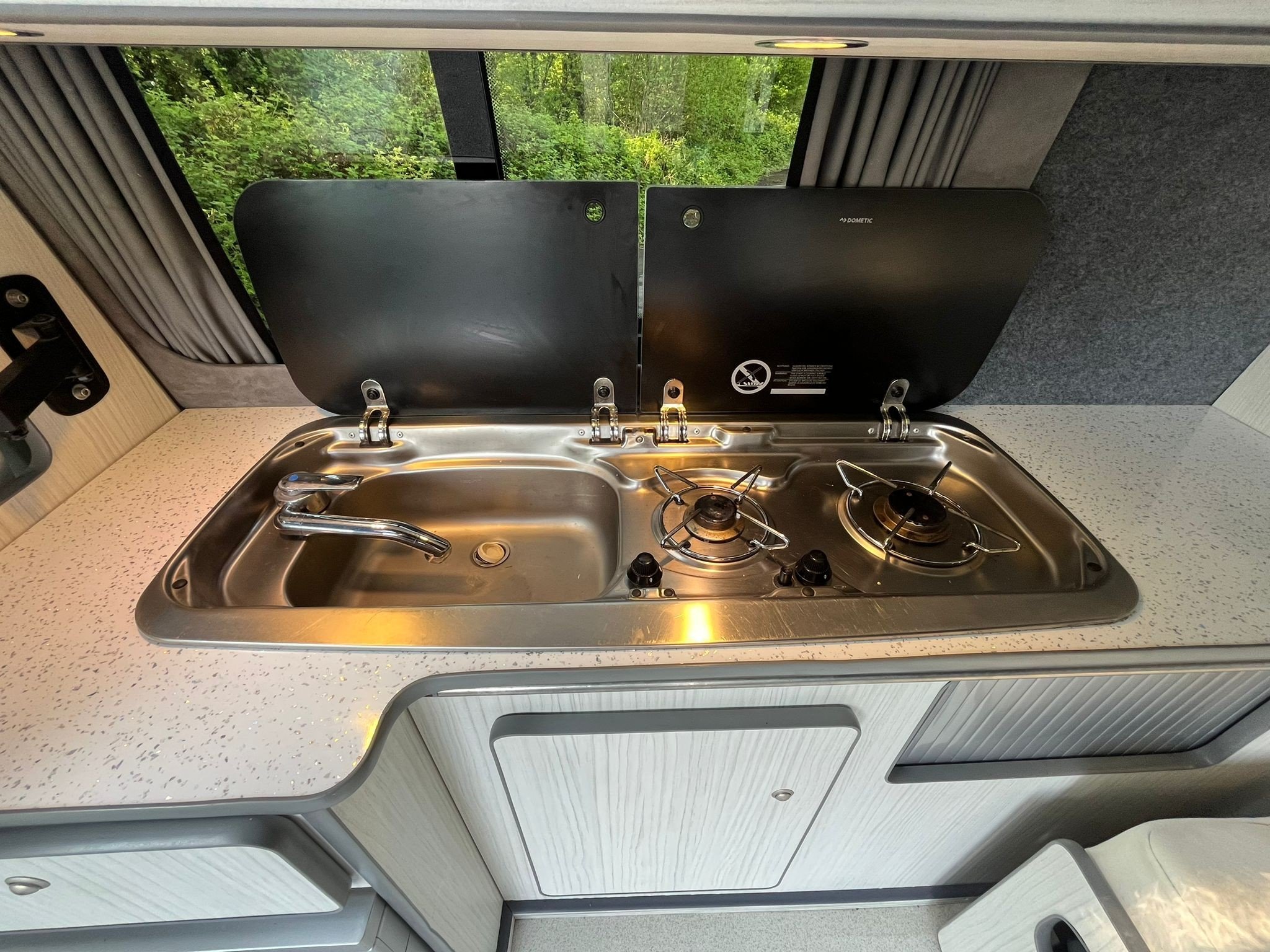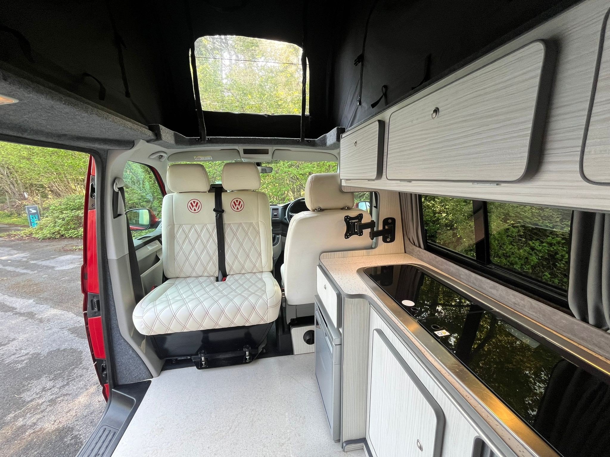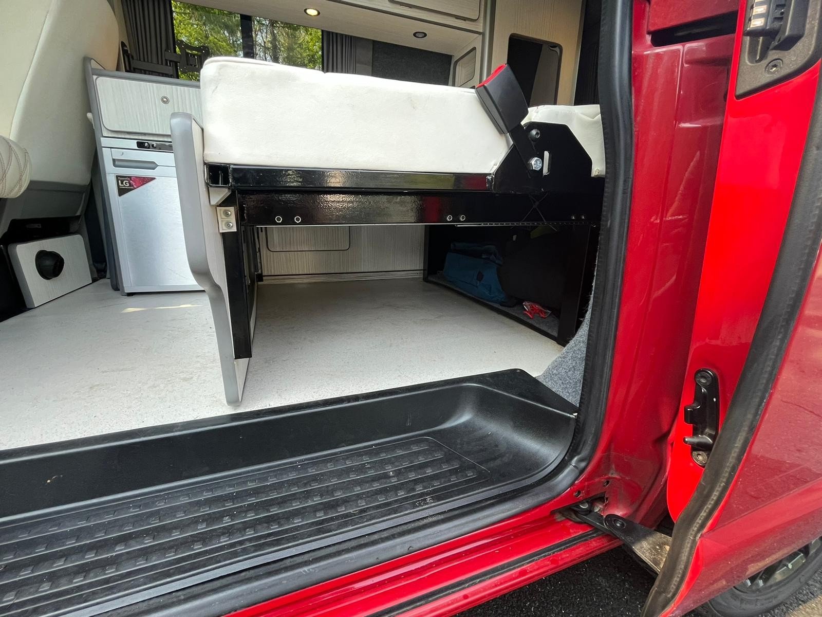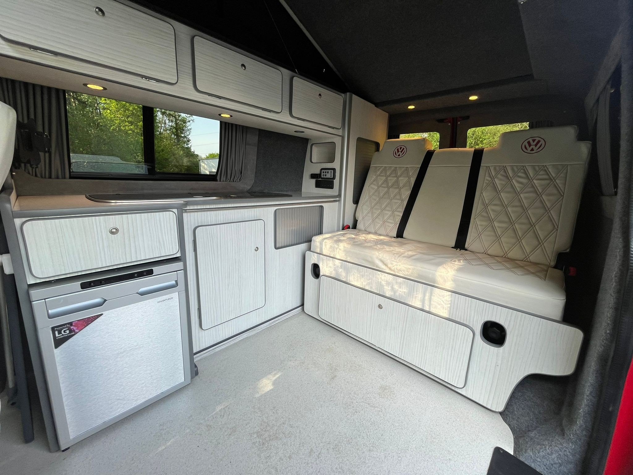 Step inside and you’re greeted by a stunning white leather interior with contrasting red stitching—a perfect blend of comfort and craftsmanship. The swivel front bench seat creates a spacious social zone, while the rock ‘n’ roll bed ensures a restful night wherever you park. Stay cozy year-round with the built-in diesel heater, and enjoy every journey with all the comforts of home at your fingertips. Adventure isn’t just possible—it’s guaranteed. This van isn’t just ready for the road, it’s ready for a new story. A world of adventure awaits.
