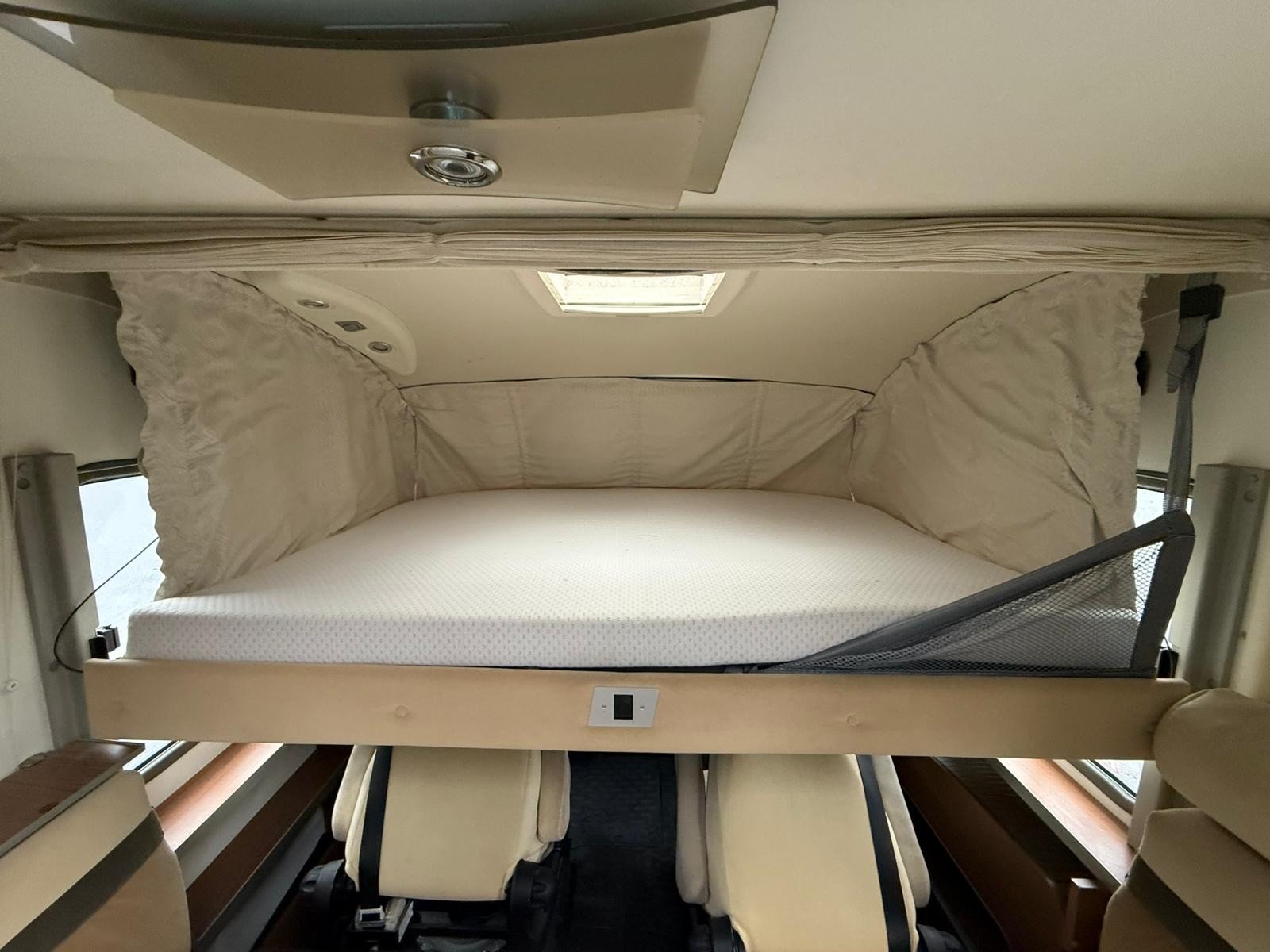 Inside, the Aviano 727i offers a wonderfully practical and luxurious layout. The rear features a fixed island bed, providing easy access from both sides, while the over-cab drop-down queen bed ensures comfortable sleeping for additional guests without compromising daytime living space. Thoughtful extras such as twin refillable LPG bottles enhance off-grid capability, and Bürstner’s renowned build quality is evident throughout. Spacious, well-equipped, and designed for effortless touring, this Aviano 727i is an excellent choice for those seeking premium A-class motorhoming with true European flair.
