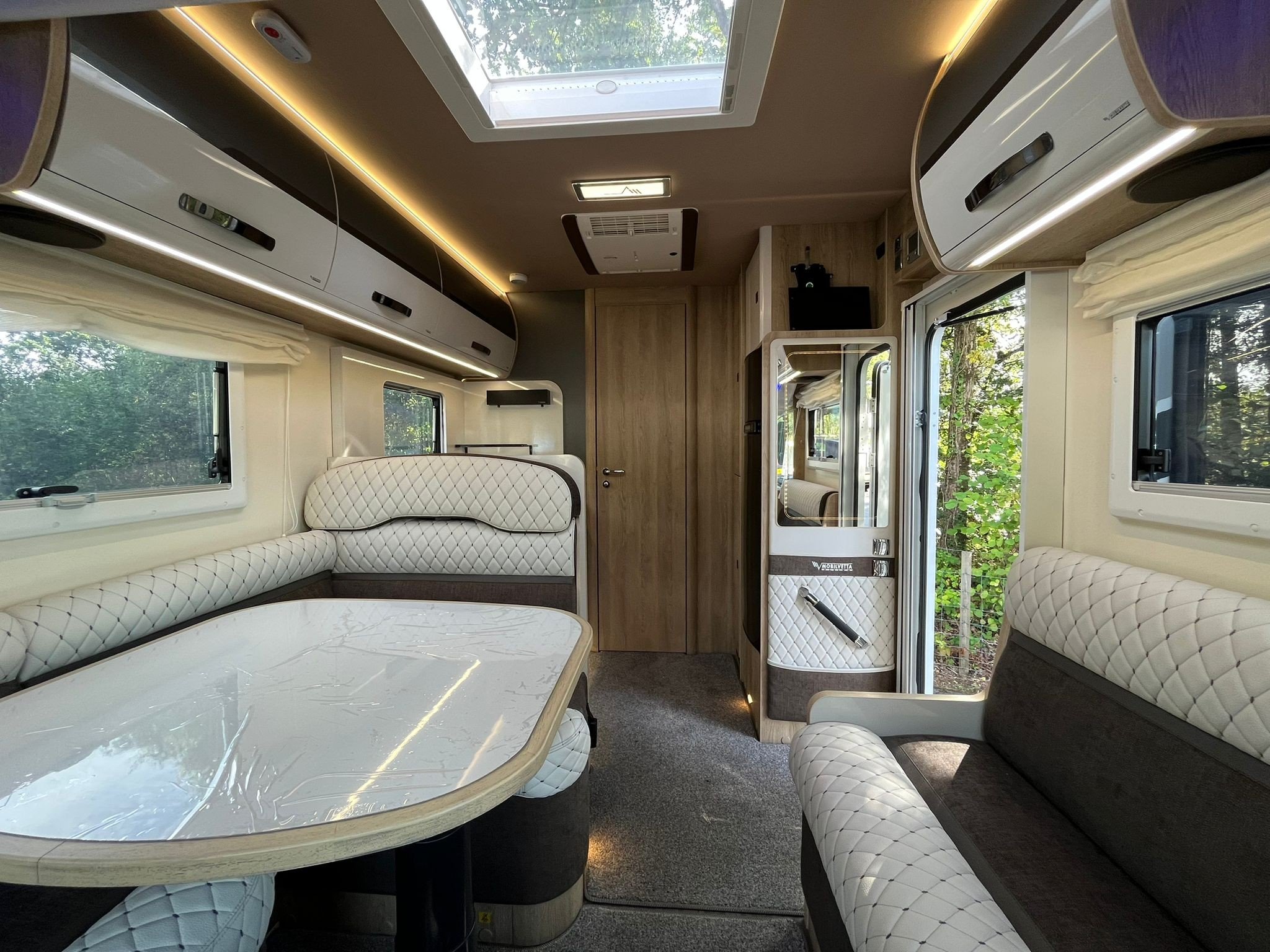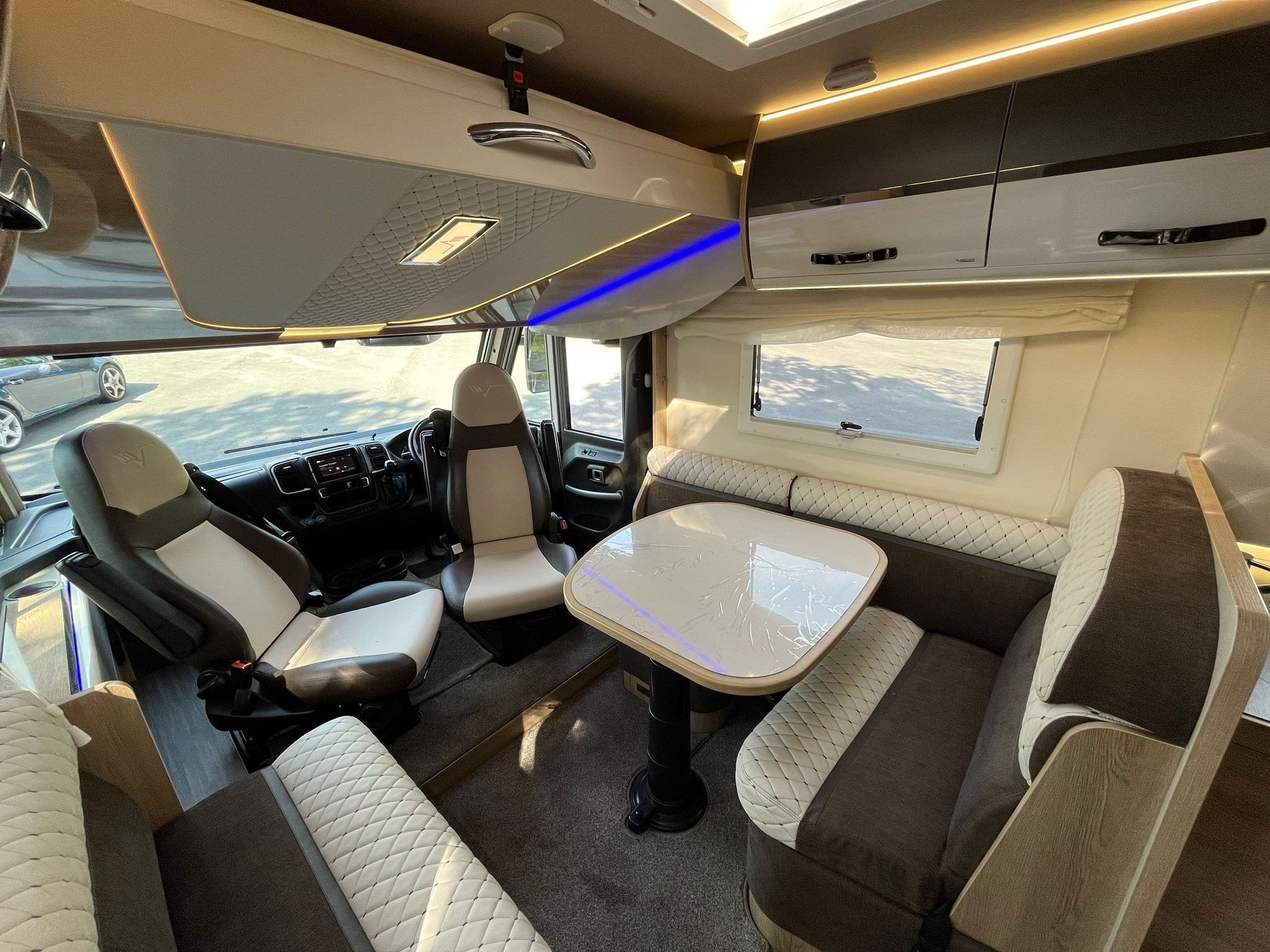 This particular example is absolutely loaded with over £15,000 worth of high-end extras, transforming it into a class-leading, go-anywhere luxury motorhome. Enjoy perfect pitch setup every time with the fully automatic self-levelling system, while the habitation air conditioning ensures comfort in any climate. Power worries are a thing of the past thanks to a lithium battery upgrade, enhanced Victron electrical system, and additional solar panels — ideal for off-grid living. Add in a wind-out awning for instant outdoor living space and a rear-mounted bike rack for your two-wheeled adventures, and you’ve got a motorhome that’s ready to turn every journey into an unforgettable experience. This is not just a motorhome — it's freedom, style, and performance on four wheels.