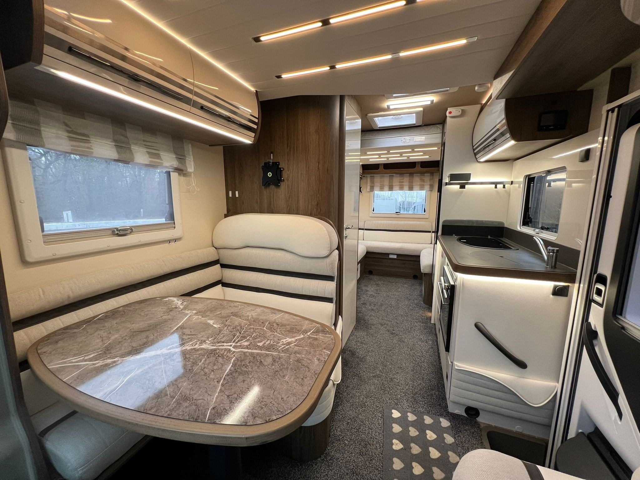 At a weight of 3,500kg, the Roller Team T-Line 700 offers excellent stability on the road while maintaining an efficient balance of power and fuel economy. It’s the perfect motorhome for those who want to travel in style without compromising on practicality. Equipped with modern amenities, including a fully fitted kitchen, spacious living area, and bathroom, this motorhome ensures a home-away-from-home experience. With its sleek design and superior build quality, the T-Line 700 offers unmatched comfort and convenience, making it an exceptional choice for those seeking adventure on the road.