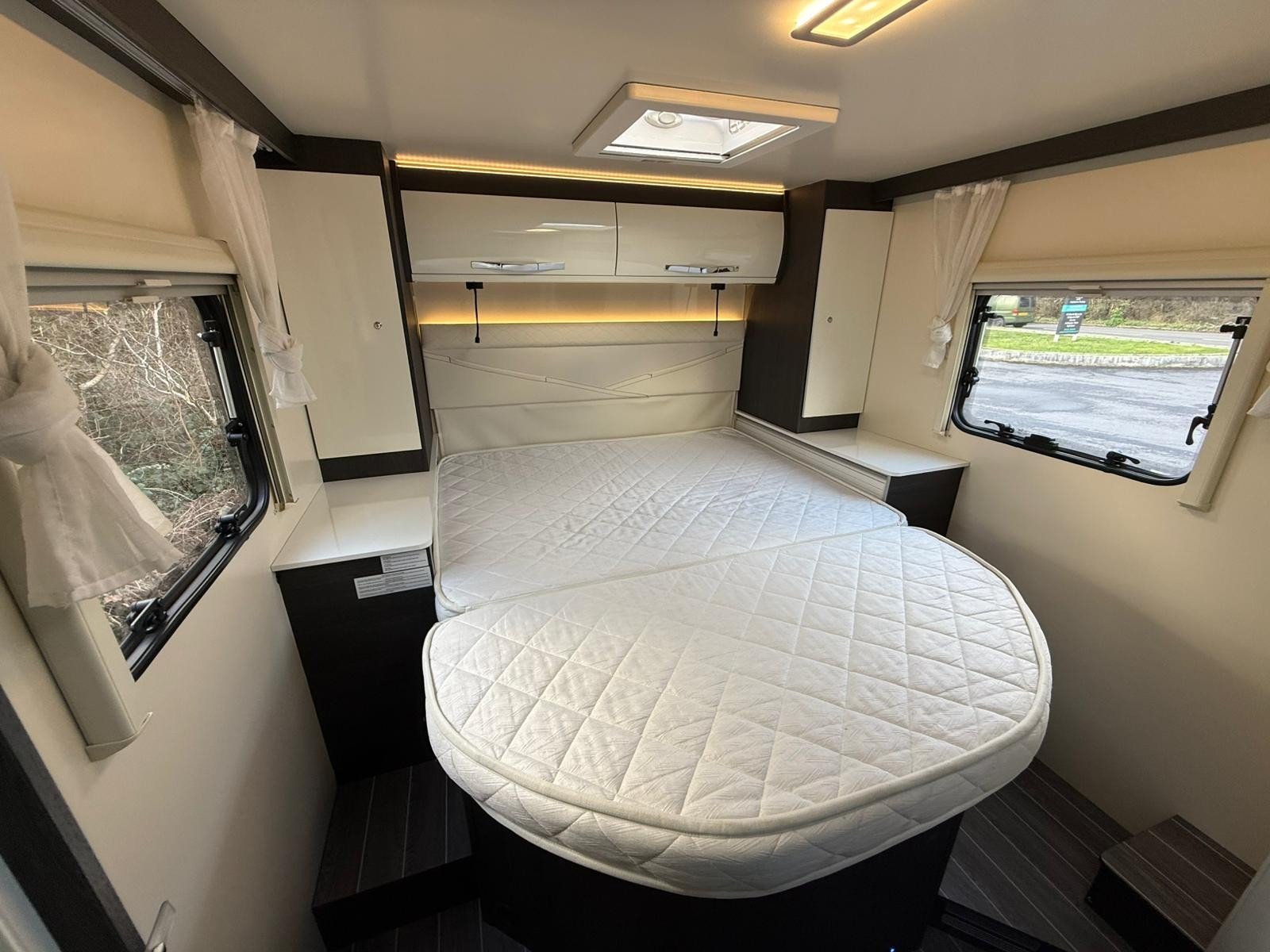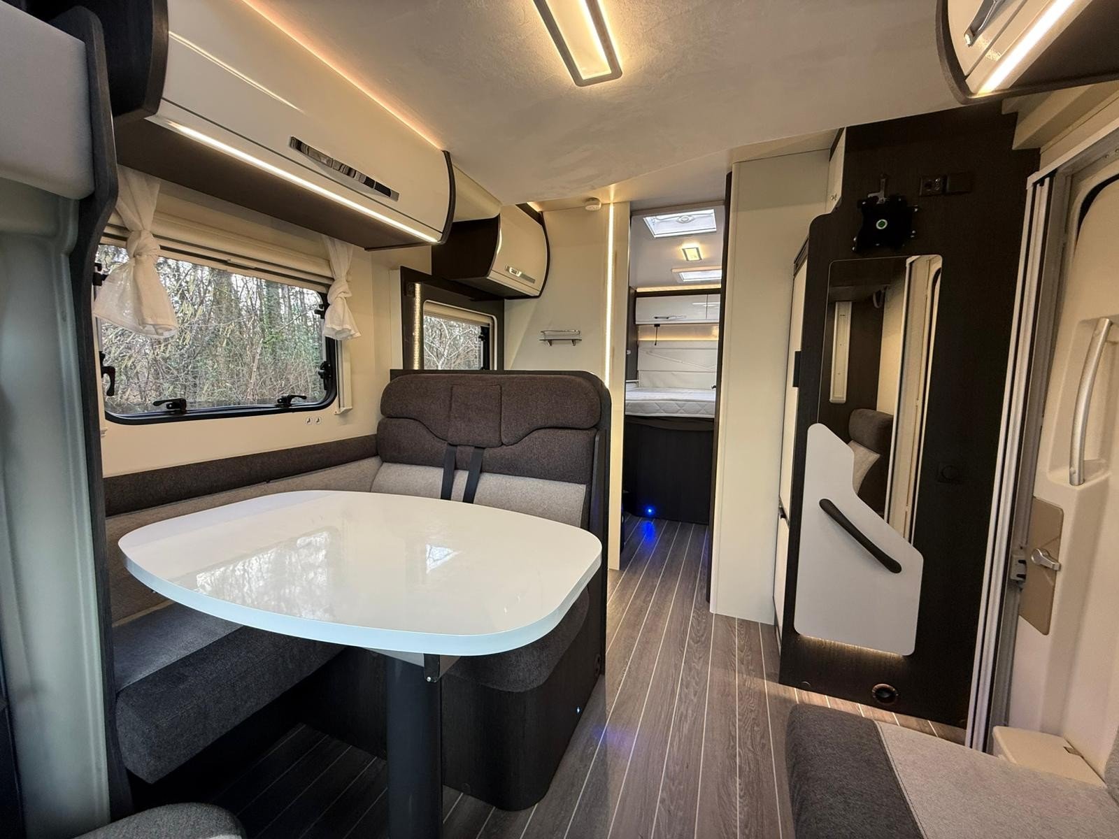 The 2023 Roller Team Zefiro 696 is a fantastic low-profile motorhome that blends smart design, comfort, and practicality in one seriously desirable package. Built on a smooth automatic transmission chassis, it offers effortless driving whether you’re cruising the motorway or exploring tighter countryside routes. This is the sought-after Flexi Bed option, giving you superb versatility in the rear setup, while still offering a true 4-berth layout with a drop-down bed over the lounge—perfect for couples, families, or guests.