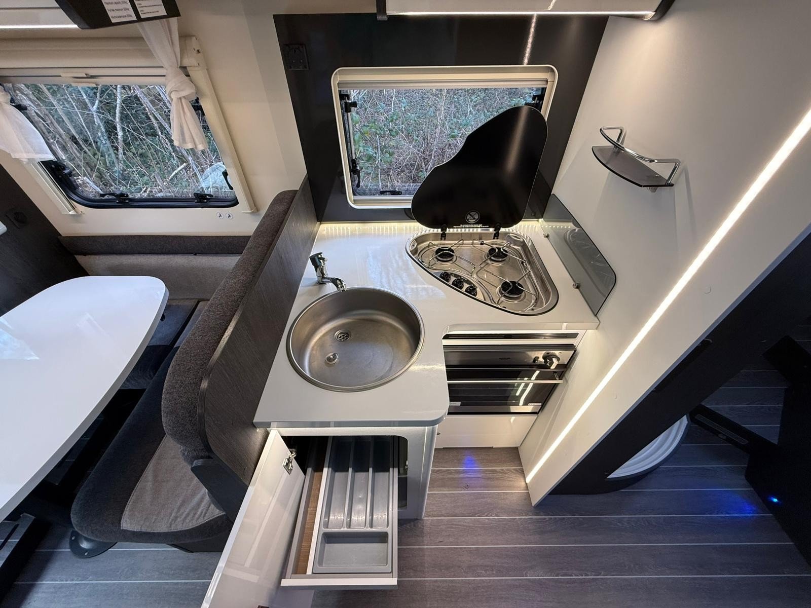 Inside, the Zefiro 696 offers a brilliantly thought-out layout with a separate rear bedroom for added privacy, plus a separate toilet and shower arrangement that makes life on the road far more convenient. The smart L-shaped kitchen is also a real highlight, making excellent use of space while still giving you a practical and comfortable cooking area. With its modern interior, flexible sleeping arrangements, and excellent all-round usability, this 2023 Zefiro 696 is a superb motorhome for anyone wanting comfort, style, and practicality in one package.